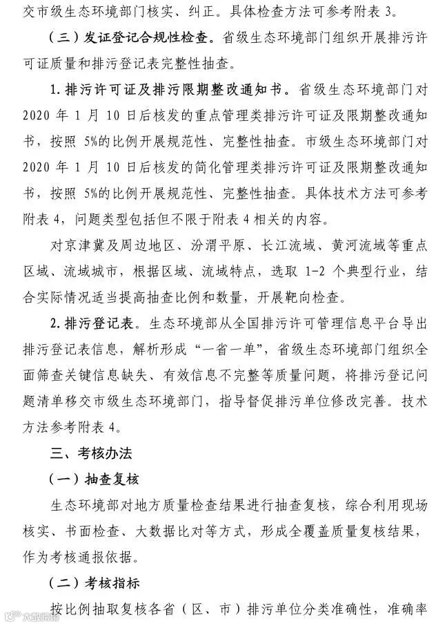 3、发证登记合规性,2020 年 11 月 30 日前,省级生态环境部门完成排污许可证和排污登记表质量抽查,并将检查清单和问题清单上报生态环境部。