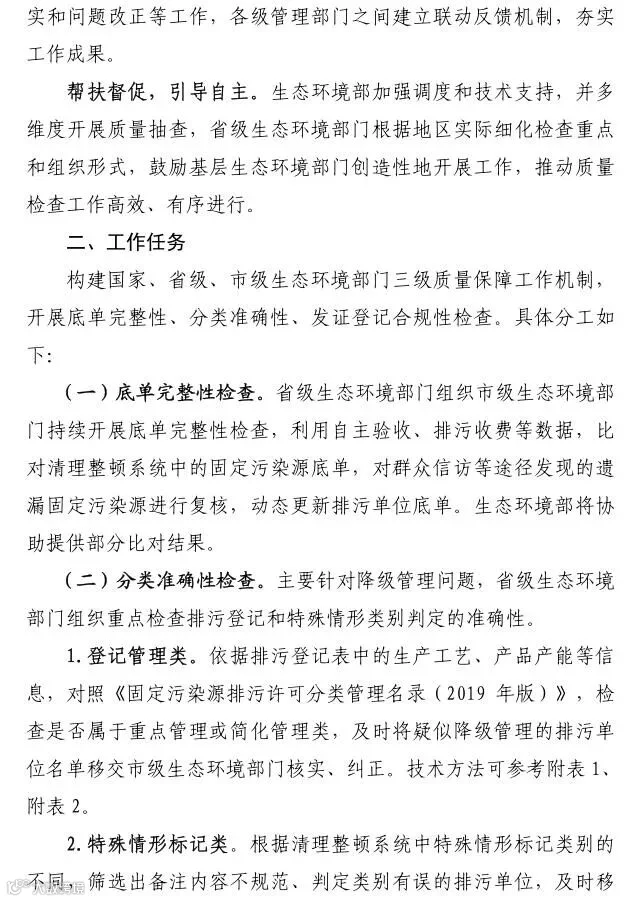 2、分类准确性检查,主要针对降级管理问题,组织重点检查排污登记和特殊情形类别判定的准确性。