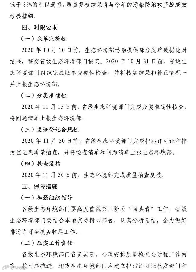 4、抽查复核,2020 年 11 月 30 日前,生态环境部完成质量抽查复核。