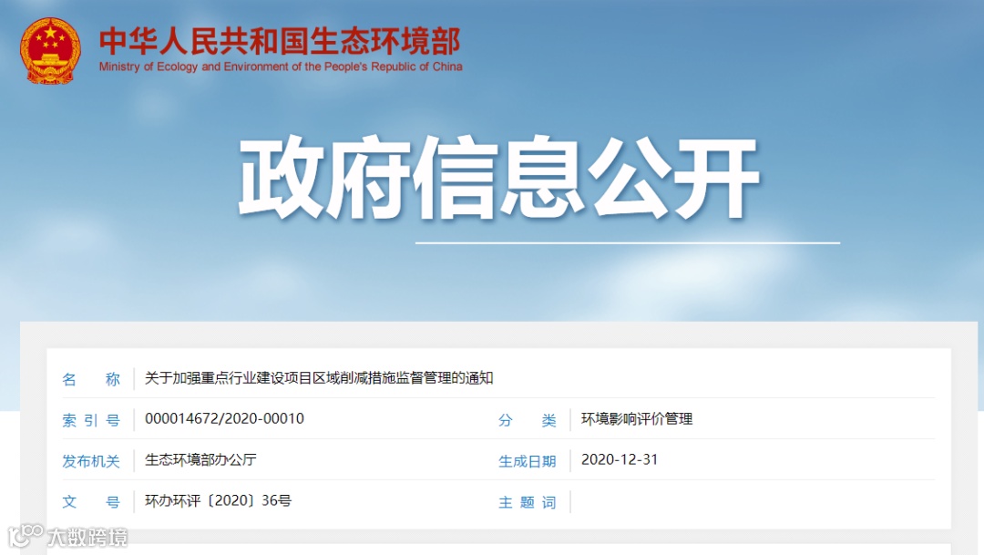 关于加强重点行业建设项目区域削减措施监督管理的通知