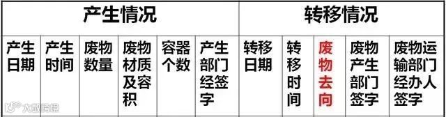 答:实验室危废从采购、入库、领用、剩余去向,都需要做登记,并注明日期、登记人,基本元素:名称、数量、包装、领用用途、领用日期、废弃数量、废弃日期、管理人。