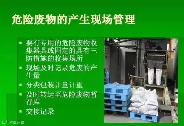危废收集:危险废物需要用专门容器,根据成分进行分类收集。危险废物分类收集必须与综合利用和处理处置相结合。装运危险废物的容器应根据各种危险废物的不同特性而设计,能有效地防止渗漏、扩散。装有危险废物的容器必须贴有标签,在标签上详细标明危险废物的名称、重量、成分和特性