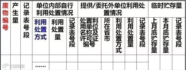 同一编号废物如果存在多种利用处置方式,分别填写所对应的利用处置量和记录表的号段,提供给多个外单位利用处置的,分别填写外单位相关信息。