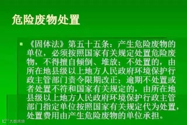 根据国家和地方环保法律法规规定:产生危险废物单位必须将危险废物进行集中处理,安排专人负责收集和管理工作,待运危险废物要设置专门容器储存,危险废物必须交有具有相应资格的单位进行收集、运输、处理和处理。