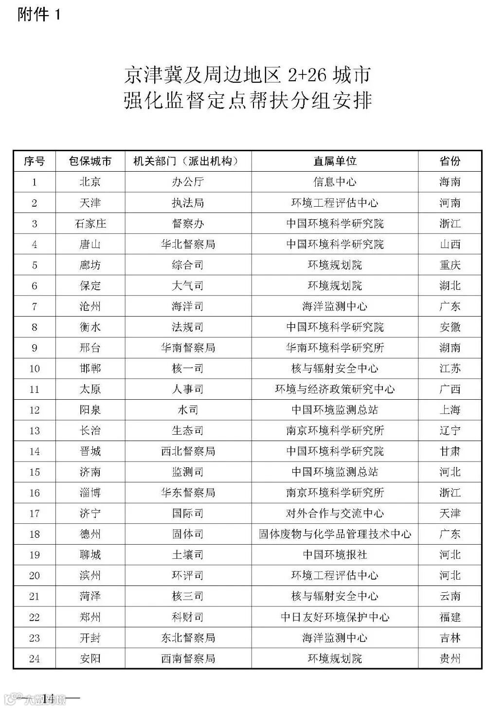 附件:1.京津冀及周边地区“2+26”城市强化监督定点帮扶分组安排