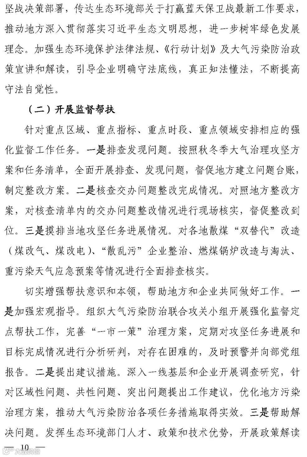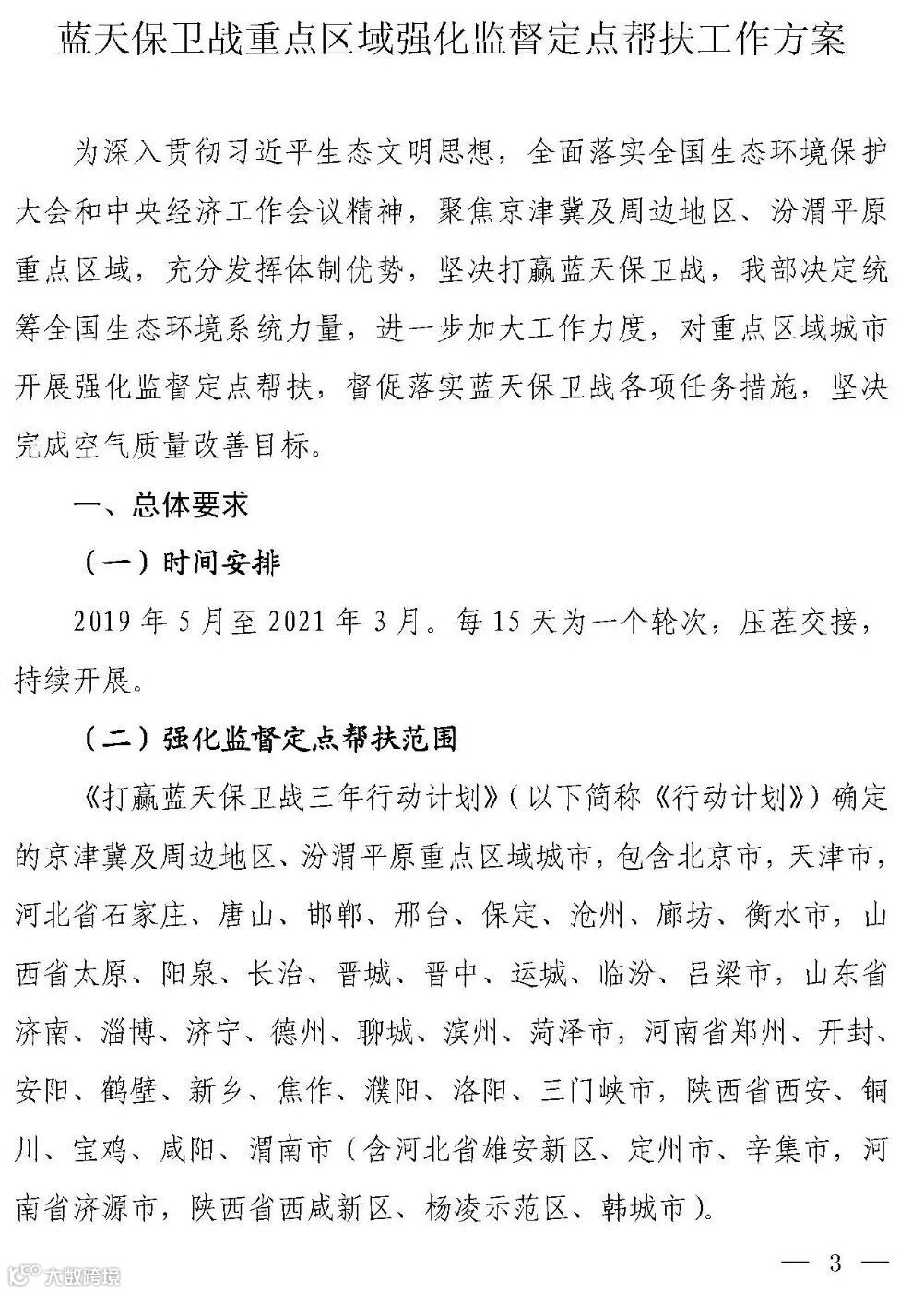 关于印发《蓝天保卫战重点区域强化监督定点帮扶工作方案》的通知