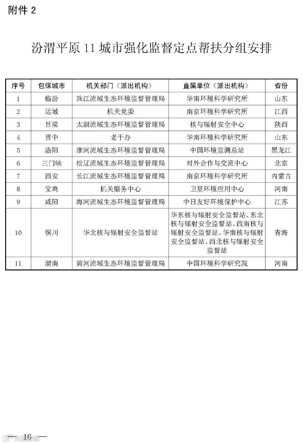 2.汾渭平原11城市强化监督定点帮扶分组安排