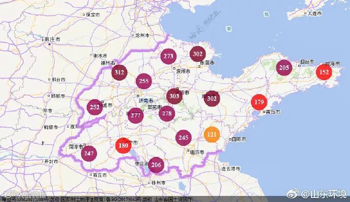 聊城 2.6km,德州 2.5km,滨州 2.5km,青岛 2.2km,