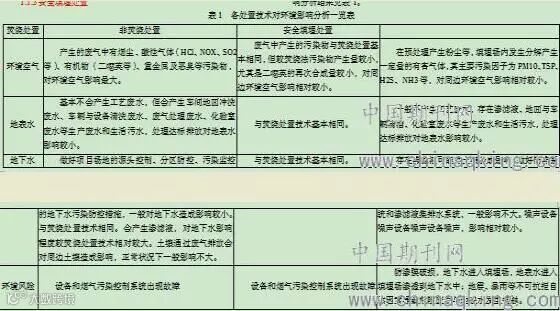 1.2各处置技术对环境影响的分析