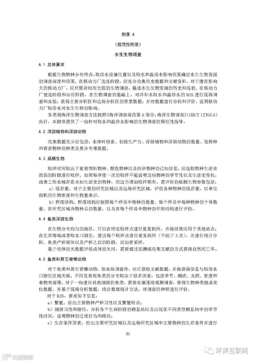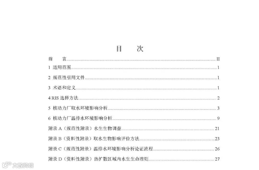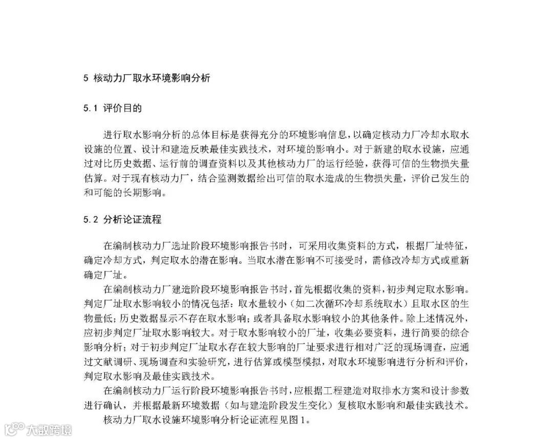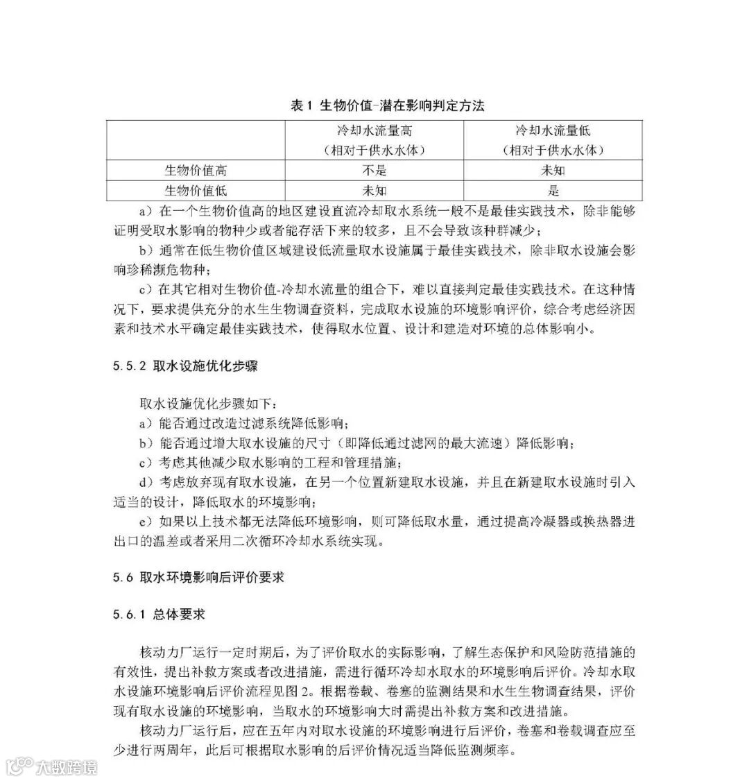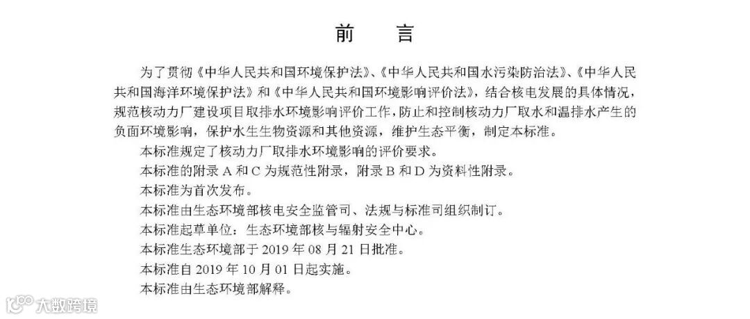 为了贯彻《中华人民共和国环境保护法》、《中华人民共和国水污染防治法》、《中华人民共和国海洋环境保护法》和《中华人民共和国环境影响评价法》,结合核电发展的具体情况,规范核动力厂建设项目取排水环境影响评价工作,防止和控制核动力厂取水和温排水产生的负面环境影响,保护水生生物资源和其他资源,维护生态平衡,制定本标准。本标准规定了核动力厂取排水环境影响的评价要求。本标准的附录A和C为规范性附录,附录B和D为资料性附录。本标准为首次发布。