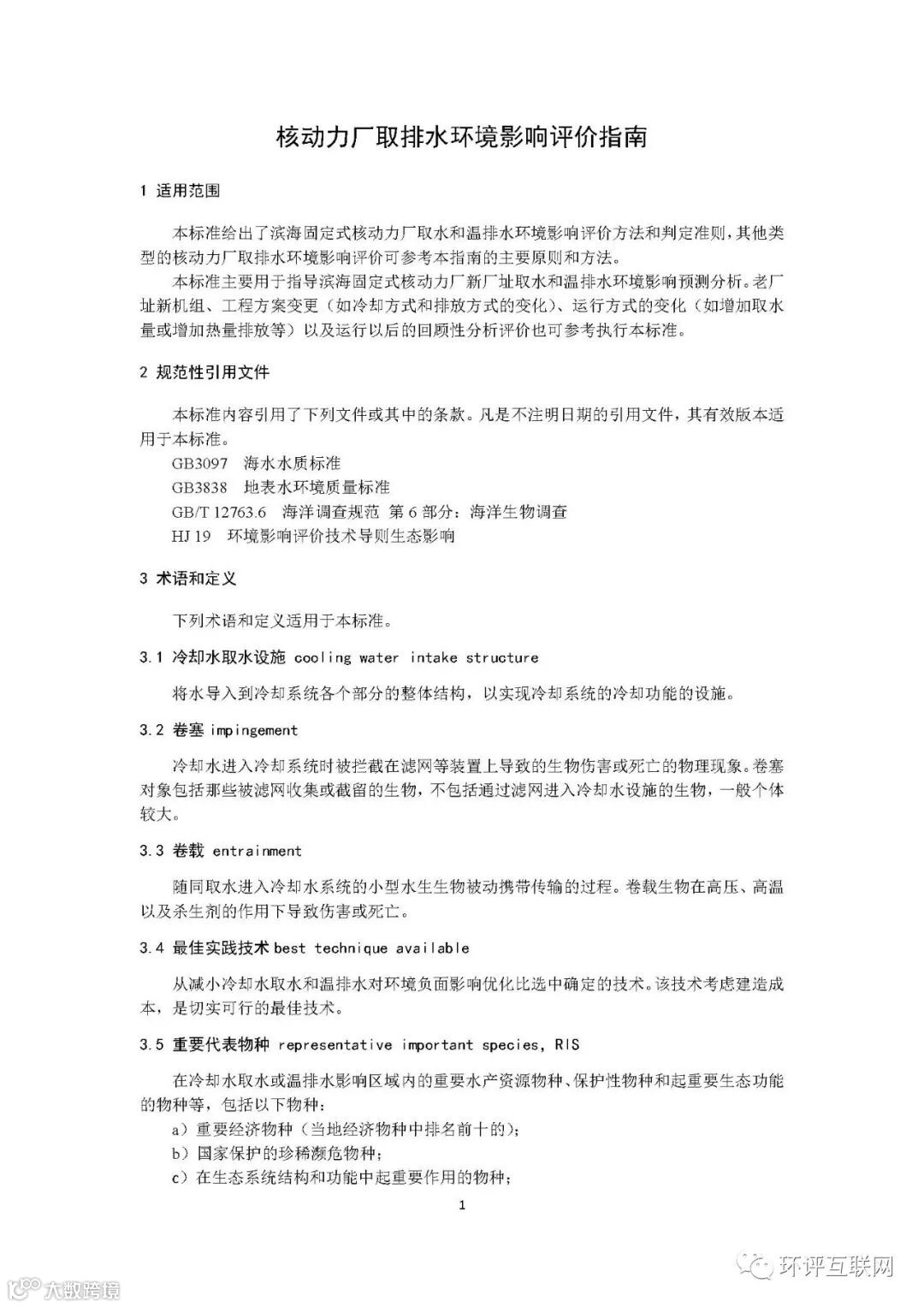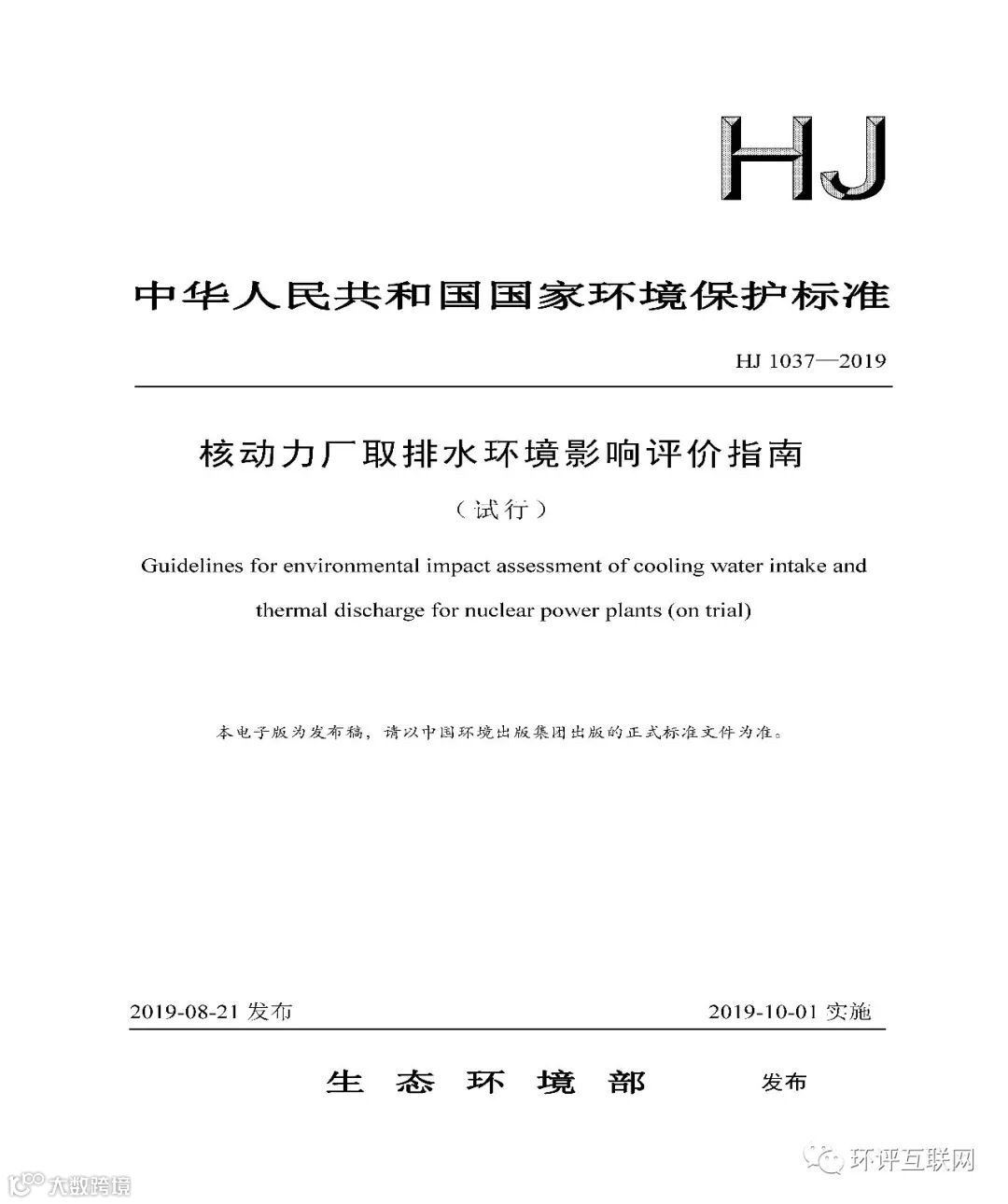 《核动力厂取排水环境影响评价指南(试行)》(HJ 1037-2019)。