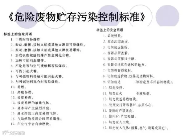 标签填写注意事项:危险情况和安全措施必须分别遵照《危险废物贮存污染控制标准》危险用语和安全用语填写。