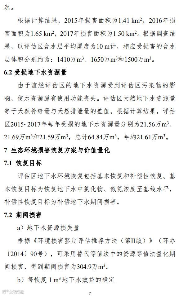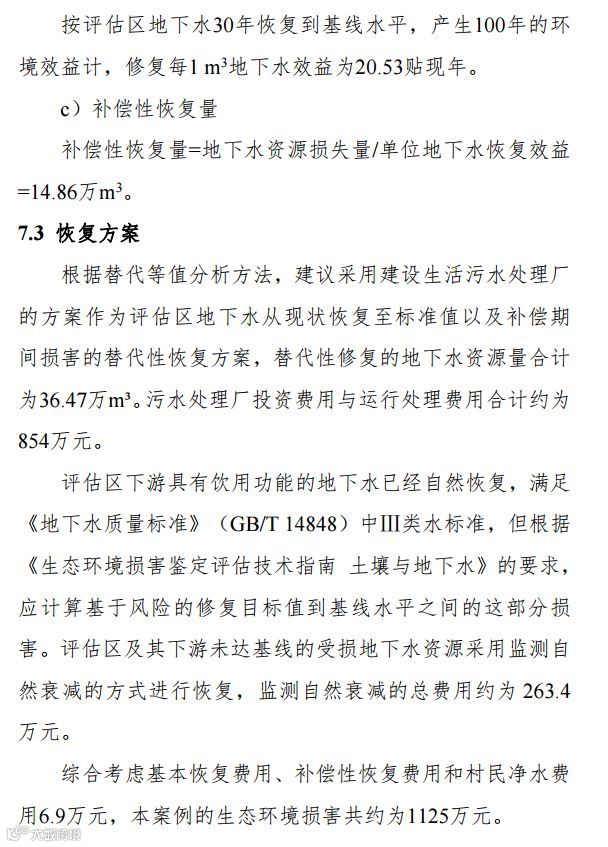 五是关于损害恢复,主要规定了土壤与地下水基本恢复、补偿性恢复与补充性恢复方案的筛选程序与原则,以及恢复费用核算方法。对于不能恢复的情况,《指南》针对不同利用类型土地和地下水的生态服务功能特点,明确了损害价值量化的方法。