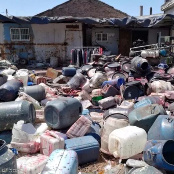 露天堆放的废油墨桶