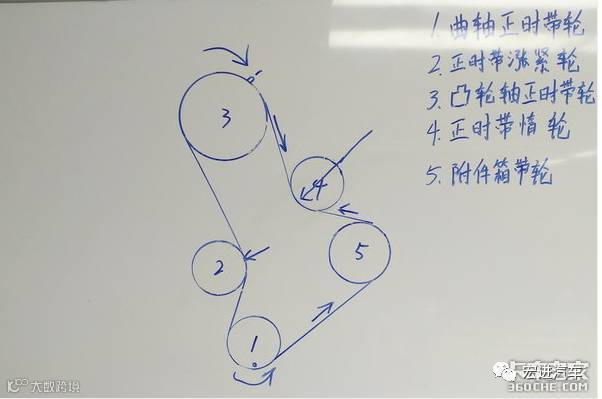撬动正时带惰轮的过程中,惰轮给正时皮带施加一个压力,导致轮系左侧皮带拉伸,曲轴和凸轮轴发生相反方向偏转,最终导致曲轴和凸轮轴位置信号无法同步而出现故障码。