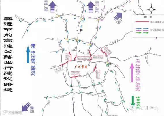 广州交警郭警官介绍,交警部门通过对往年春运期间广州市各高速车流情况分析,结合对今年春运高峰车流的预判,精心制定了11条最佳出行路线,并绘制出行路线引导图,车主可根据前往的目的地,选择符合自身需要的路线出行,最大限度的避开车多、拥堵路段。