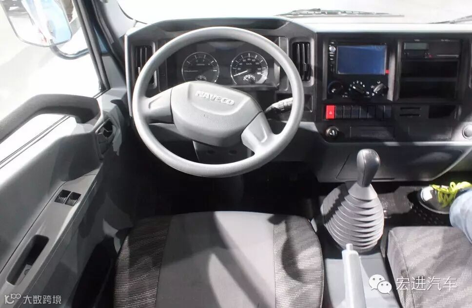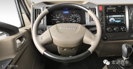 驾驶室宽度1.95米,厢式车货厢3.6米,小驾驶室能够方便的在城区道路行驶,低货厢高度也更方便人工装卸货物。驾驶室中间留有很多改装的空格,除了储物用,还可以加装其他设备的控制仪器;5档变速箱的操作手柄已经和乘用车看齐了。