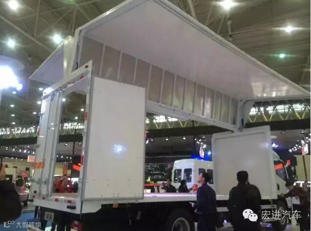 展出的超越C500车型为翼展车,本是厢体两侧面的护板,可以像翅膀一般悬起。这样的设计使得其装卸货的效率堪比平板,超越高栏,而无需盖篷布放下翼版即可保证货物完整性。兼具了平板车的装卸便利性,又保持了厢式车对货物的保护性,可谓创意独特。