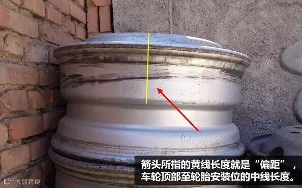 偏距听起来会觉的一头雾水搞不明白,但解释起来其实很简单,就是车轮顶部到轮胎安装位中间的距离,大家不明白的可以参考一下上图。