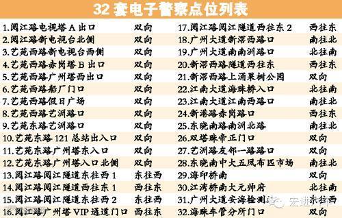该批新增的电子警察主要集中于广州塔附近的阅江路、艺苑东路、艺苑西路等路段,共增加了17套电子警察。其余新增的电子警察也都在海珠区,主要分布在新滘西路、江南大道、新港路赤岗路口、东晓南路南洲北路等路口。