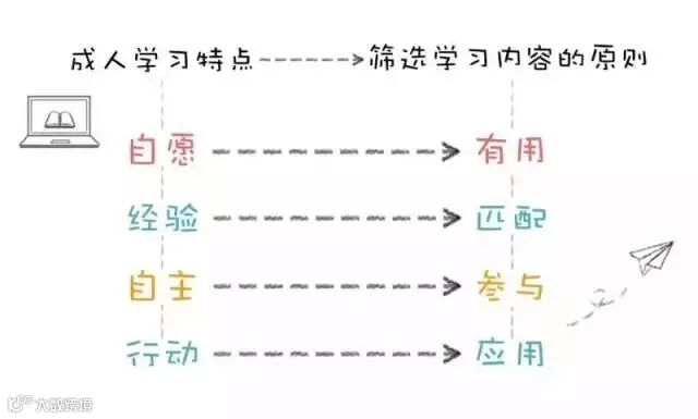 相比小孩来说,成年人有更多主见。我们接受哪些信息、哪种方式,都是有自主性的。所以,我们选择的学习,应该是能让我们有参与感,而不是说教型的。