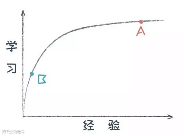 我们看上面这张图,要达到右边A的点需要1万小时,但是达到B那个点,可能20个小时候就够了,学习的大部分事情其实达到B或者A和B之间足矣。