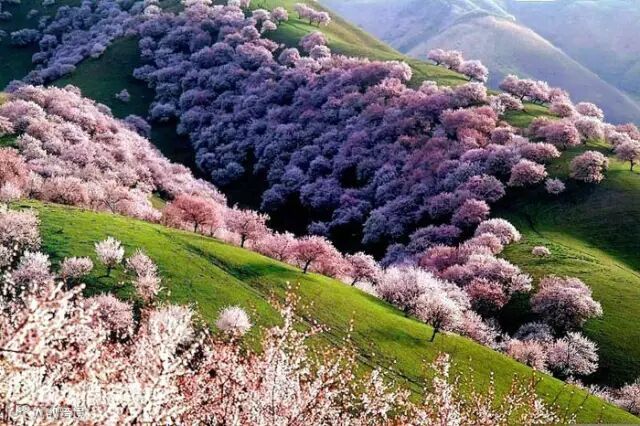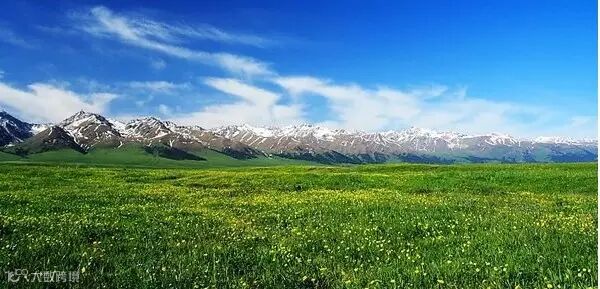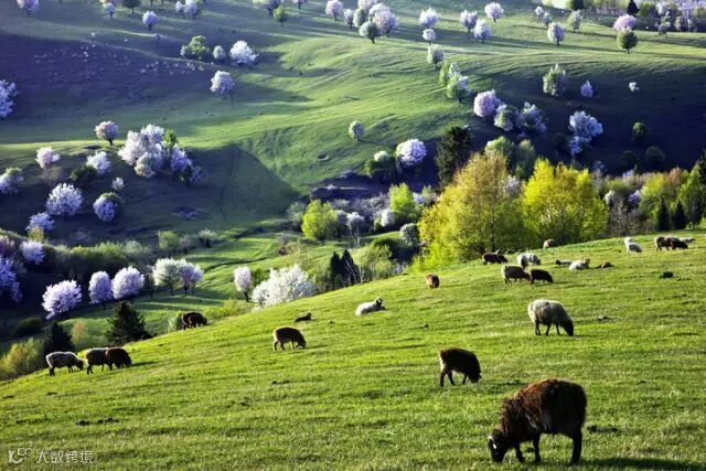 仲春时节,草高花旺,碧茵似锦,极为美丽。那拉提年降水量可达800毫米