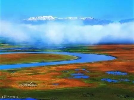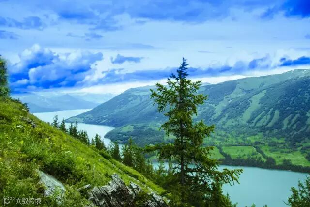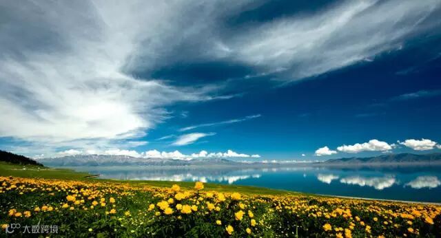 山与湖相互映衬,碧水蓝天、青山白云、雪岭草甸浑然一体,湖光山色美不胜收。