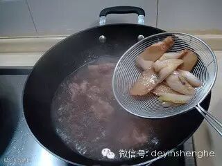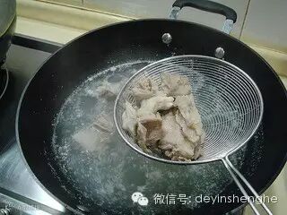 此时把羊肉煮熟后拣出葱姜和花椒不要。