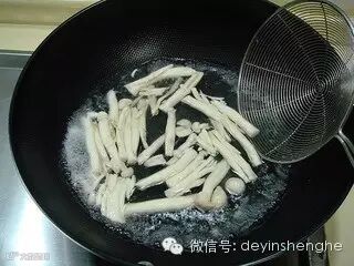 在煮羊肉期间把蘑菇汆烫一下。
