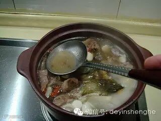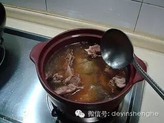 然后用手勺撇净汤中的浮油,再用中火煮20分钟即可。