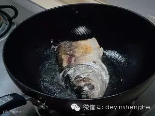 另起炒锅放入少许油烧热,然后下入鱼头进行煎制。