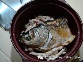 把鱼头煎至两面微黄取出放入砂锅内。
