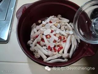 再撒上淮山药片、枸杞和黄芪片。