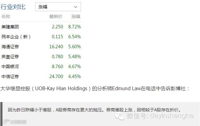 由于不存在涨跌幅限制,中信证券港股昨日暴跌16%,今日盘中一度反弹6.1%,海通证券港股亦反弹超过5%。