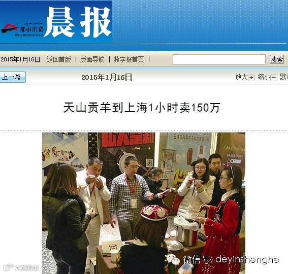 在上海举办的中国互联网思维大会的路演现场,客商争相品尝天山贡羊。