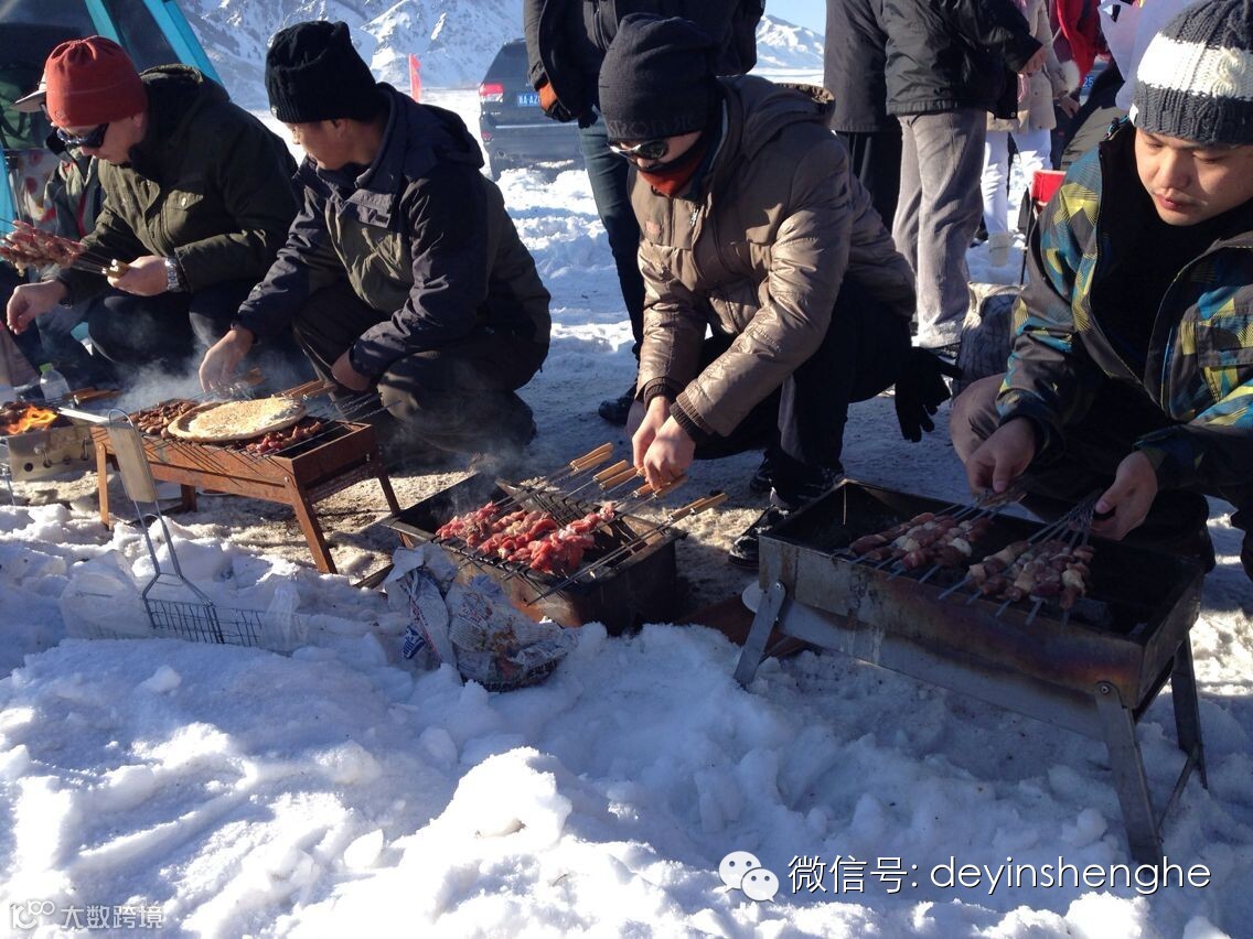 德银盛合12月21日一早,伴随着清晨的一缕阳光,天山贡羊工作人员及“新疆人大口吃肉 驰骋漫天雪地 滑板飞起来”活动参加者一行驾车前往水西沟镇托里乡附近举行了丰富多彩的户外活动。