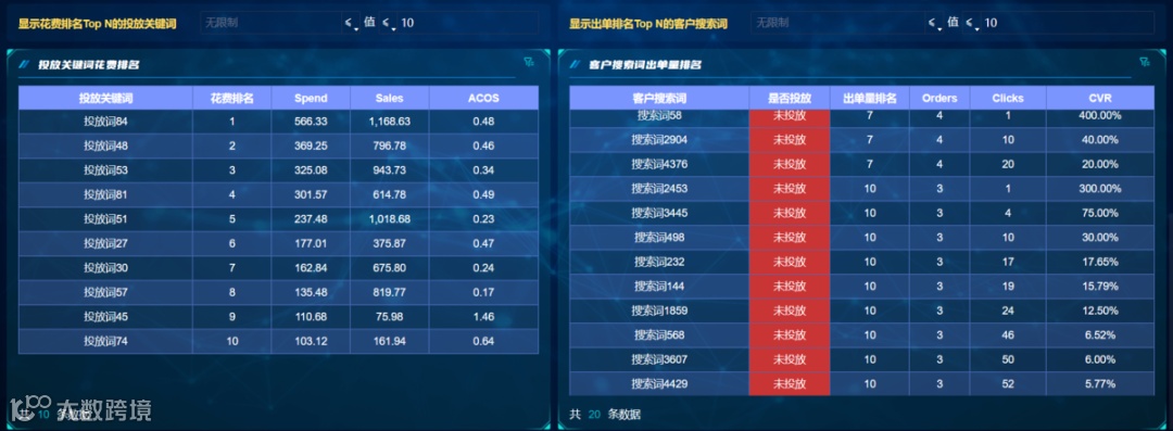 当然,也可以按照工作主题搭建主题看板,如《关键词&搜索词指标排名看板》