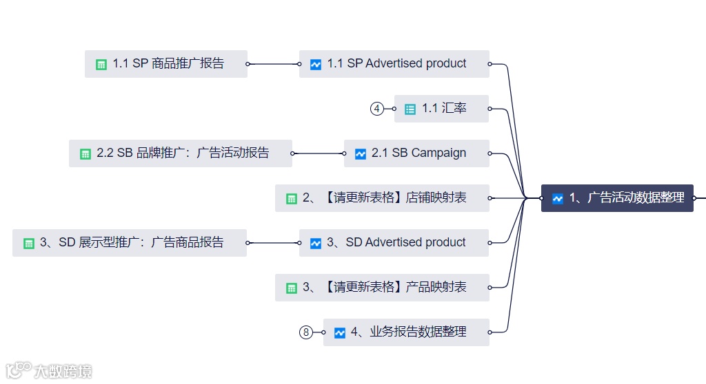要实现全域、个性化的每日数据监控,需要将广告数据、业务报告(Business Report)数据、汇率数据、店铺映射表、产品映射表、前台数据等汇总起来,形成一张综合的每日数据表。