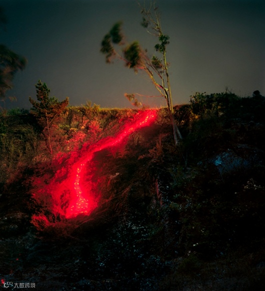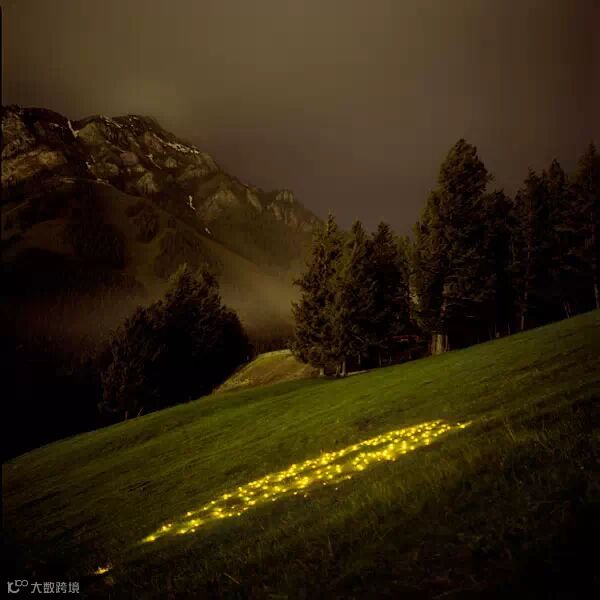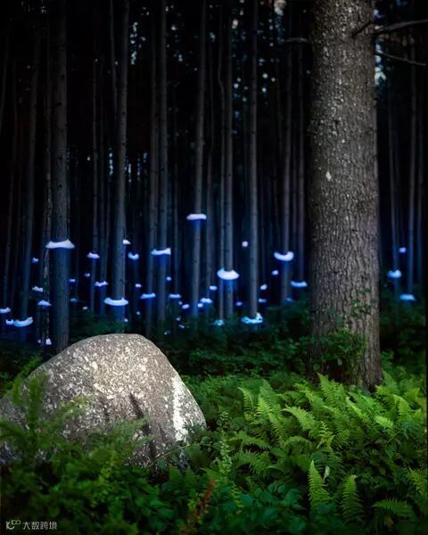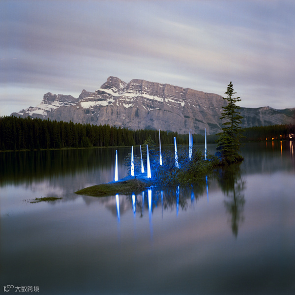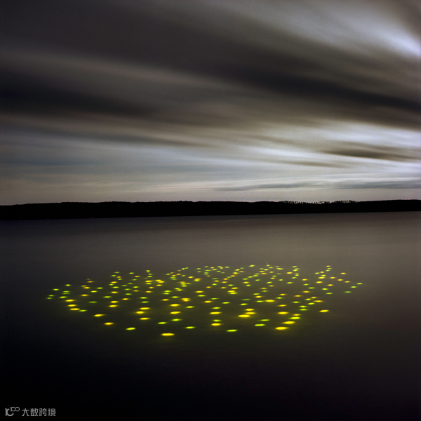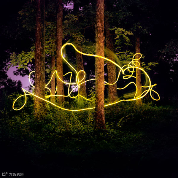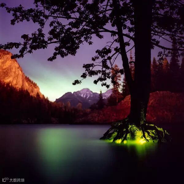 利用一些低功率的发光原件,例如 LED 灯泡和发光棒,Underwood 用长曝光拍摄出了充满动感和迷幻光影的大自然。