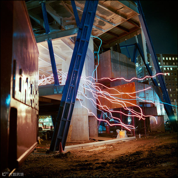 “拍摄之前要计划许多东西——有几个阶段,有时候我先在工作室想好,然后外出寻找合适的地点,以及一些可能会有用的东西。我寻找商店的灯光,以及任何可以给我提供背景光或照亮天空的街灯。长曝光需要低发散度的光照,这样天空背景才不会影响长时间的曝光,”Underwood 说。