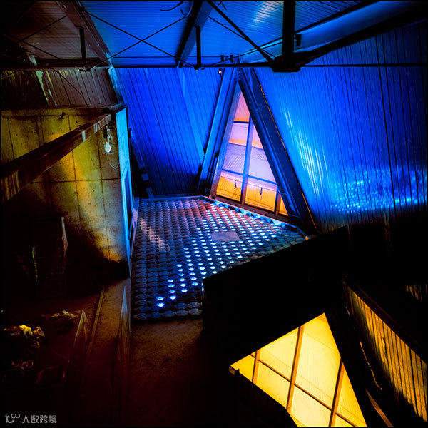 他喜欢将灯泡和发光棒包上蜡纸,让光线漫射出去,或用攀岩绳将不同的光照部件悬挂在半空。