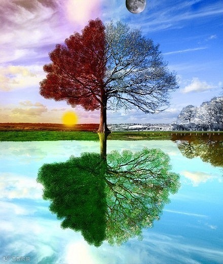 一棵树的春夏秋冬每年都在同样的重复着,演绎着不变的景色,而人却会随着时光流逝而慢慢变老,青春消逝,时光不再。