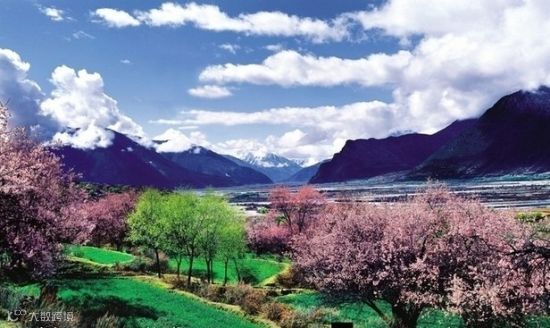 西藏林芝“桃花沟”,三面环山,高处有水源,四周林木葱郁,拥有一片天然野生桃林。每年的四月,寒意未尽,远方的雪峰白雪皑皑,但是这片巨大的野桃林,桃花已如醉霞绯云般争奇斗艳,给林芝带来了一片壮丽的春天。