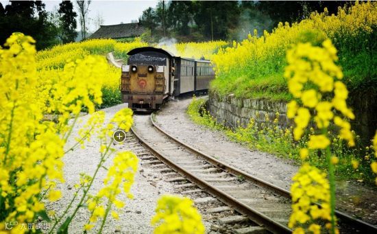嘉阳小火车,世界上唯一仍在运行的客运蒸汽窄轨小火车。现在正是油菜花盛开的季节,是否脑子里现在浮想出“坐在世界上唯一运行的小火车上面穿越油菜花的画面”先让你过一过干瘾吧!小火车,发出“呜---呜----”的汽笛声,在窄窄的铁轨上,以每小时20公里的速度前行,这样的速度可以让你慢慢欣赏窗外的大片油菜花。每年的4月份,是那里最美的时候!