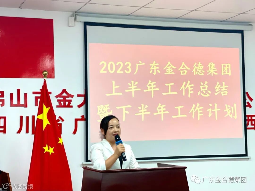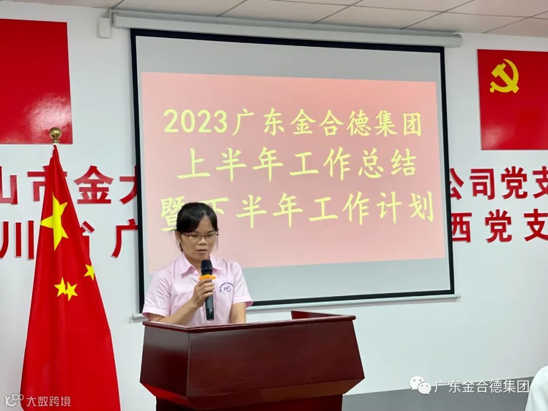 金固源公司销售部李婵梅经理结合会议主题,总结了上半年的销售情况,在艰难的市场大环境下,销售部始终保持稳定向前的数据,为进一步助力销售部进行市场突破,李经理提出从多渠道着力,以“产品,服务,品牌”为销售注入新动能,以销售力提升企业实力。