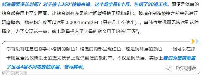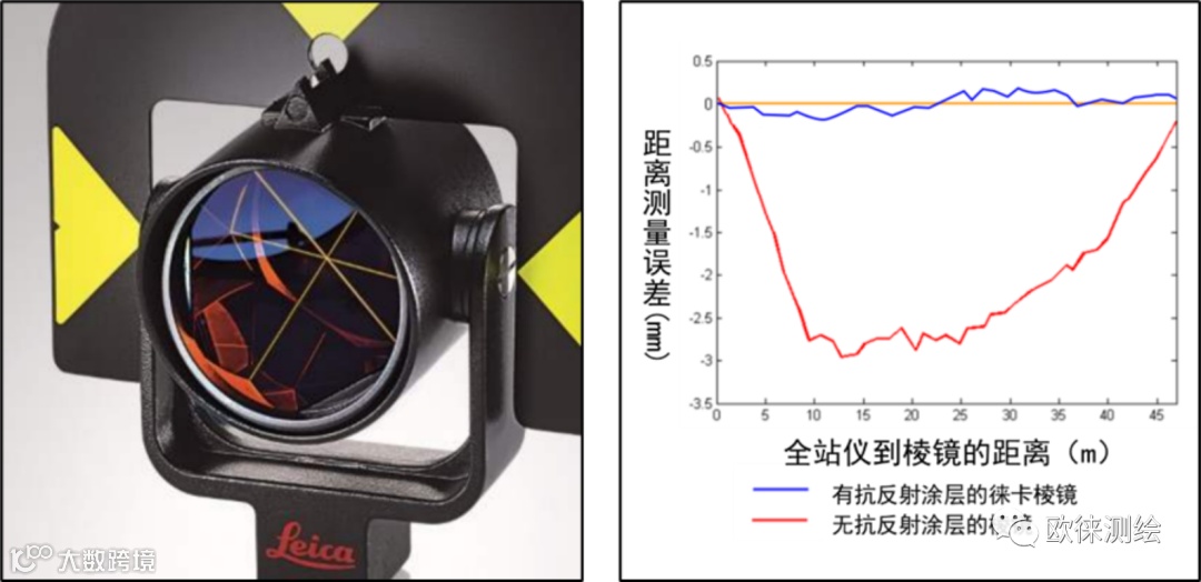 棱镜前表面的蓝色抗反射涂层,最高可防止3mm的测距误差