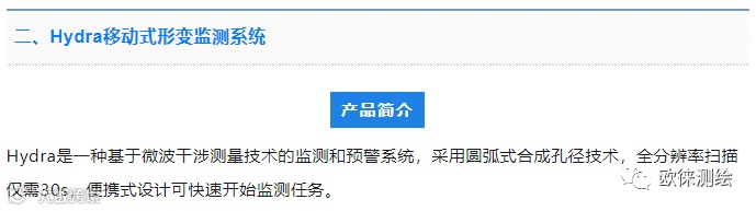 Hydra移动式形变监测系统,方便快捷,监测精度高,可3D直观显示变形信息。特别是采矿监测、未建成隧道监测、建筑物的临时性监测、古建筑、危房的紧急监测、地灾边坡的监测中能起到很好的效果。
