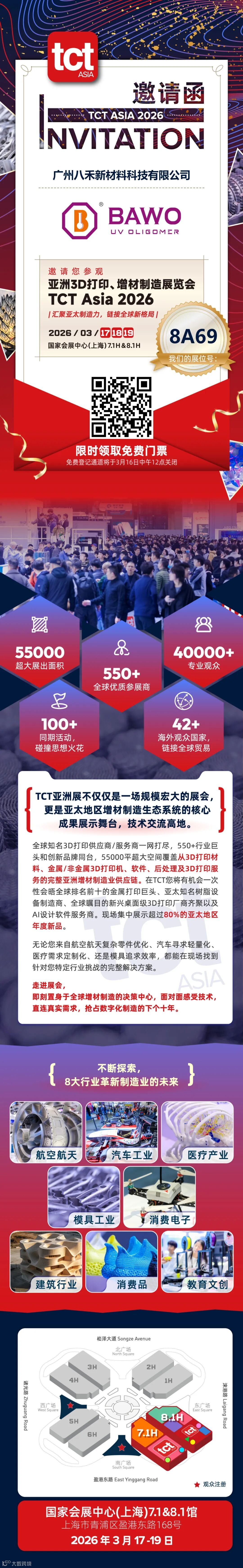 亚洲增材制造年度盛会 ——2026 TCT 亚洲 3D 打印展即将登陆上海!八禾新材携全系列高性能 3D 打印材料重磅亮相,诚邀行业伙伴、新老客户莅临现场,共探增材制造新未来!