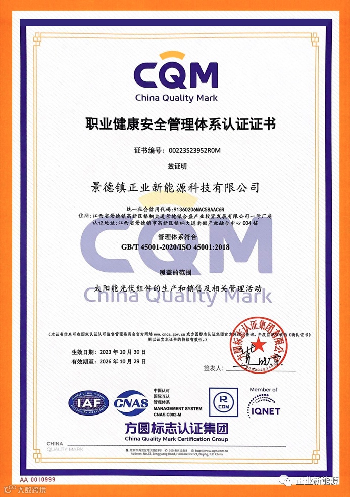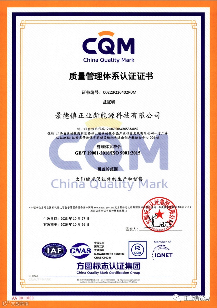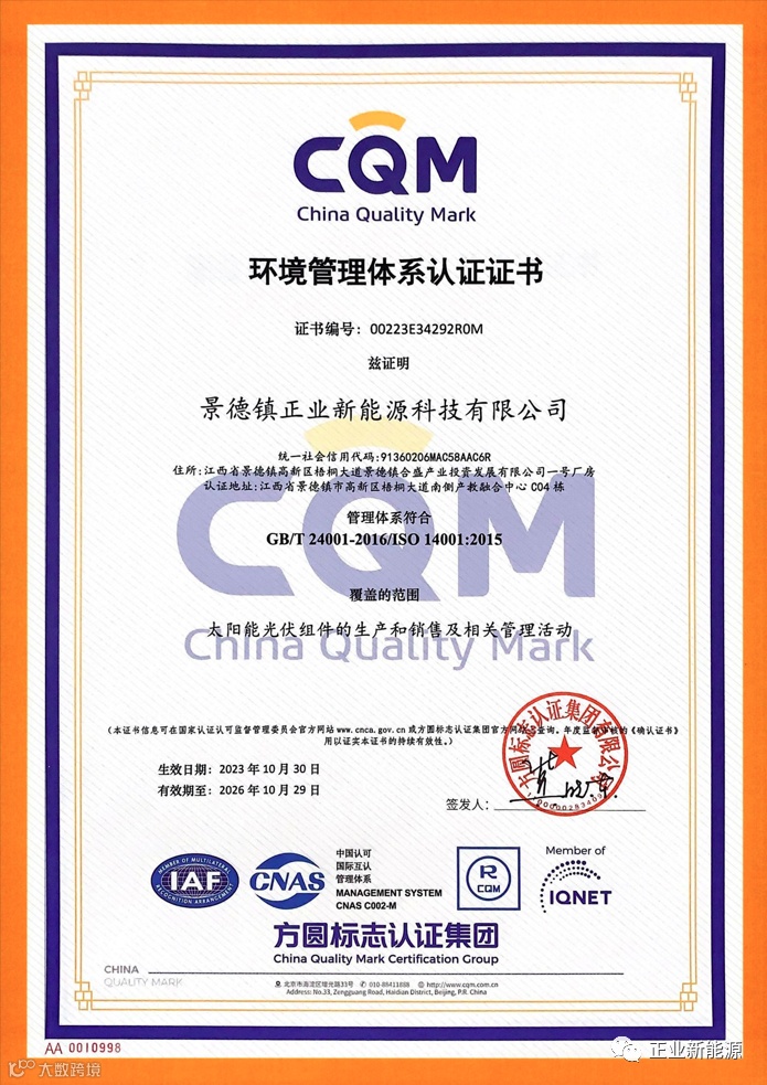 对正业新能源而言,此次获得ISO审核认可,是荣誉,更是一份责任。今后,正业新能源将延续景德镇独有的传统“匠人精神”,继续严格实施质量、环境和职业健康安全管理体系并不断创新、修正改善,努力使公司成为行业的领导者和合作伙伴的首选。
